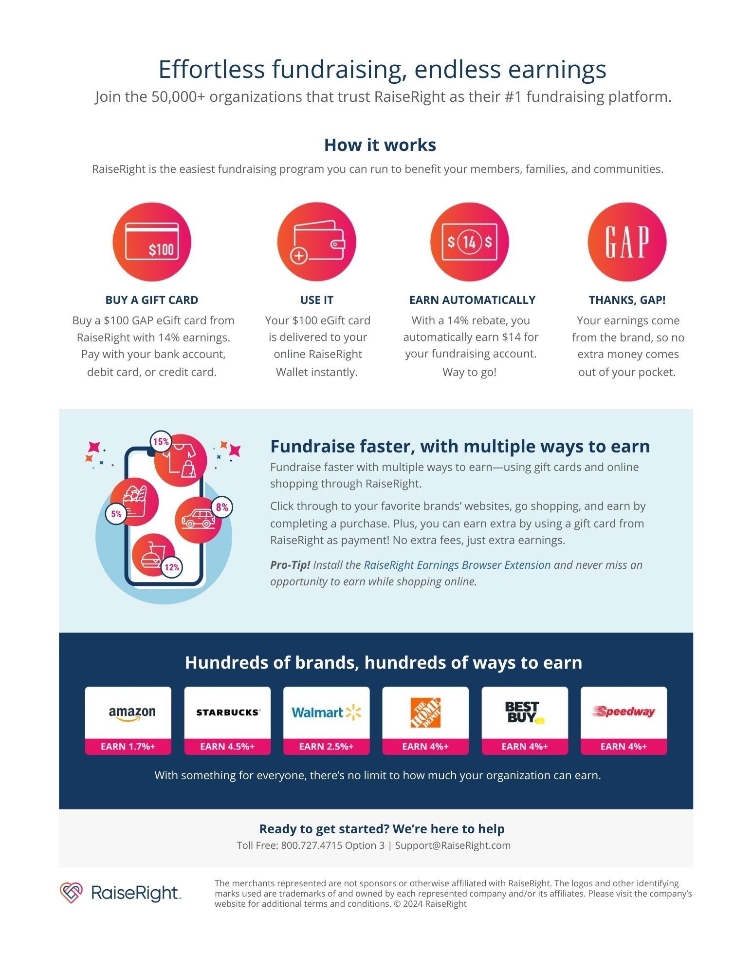 Earn back your $600 fundraising fee by buying gift cards and shopping through the app.
